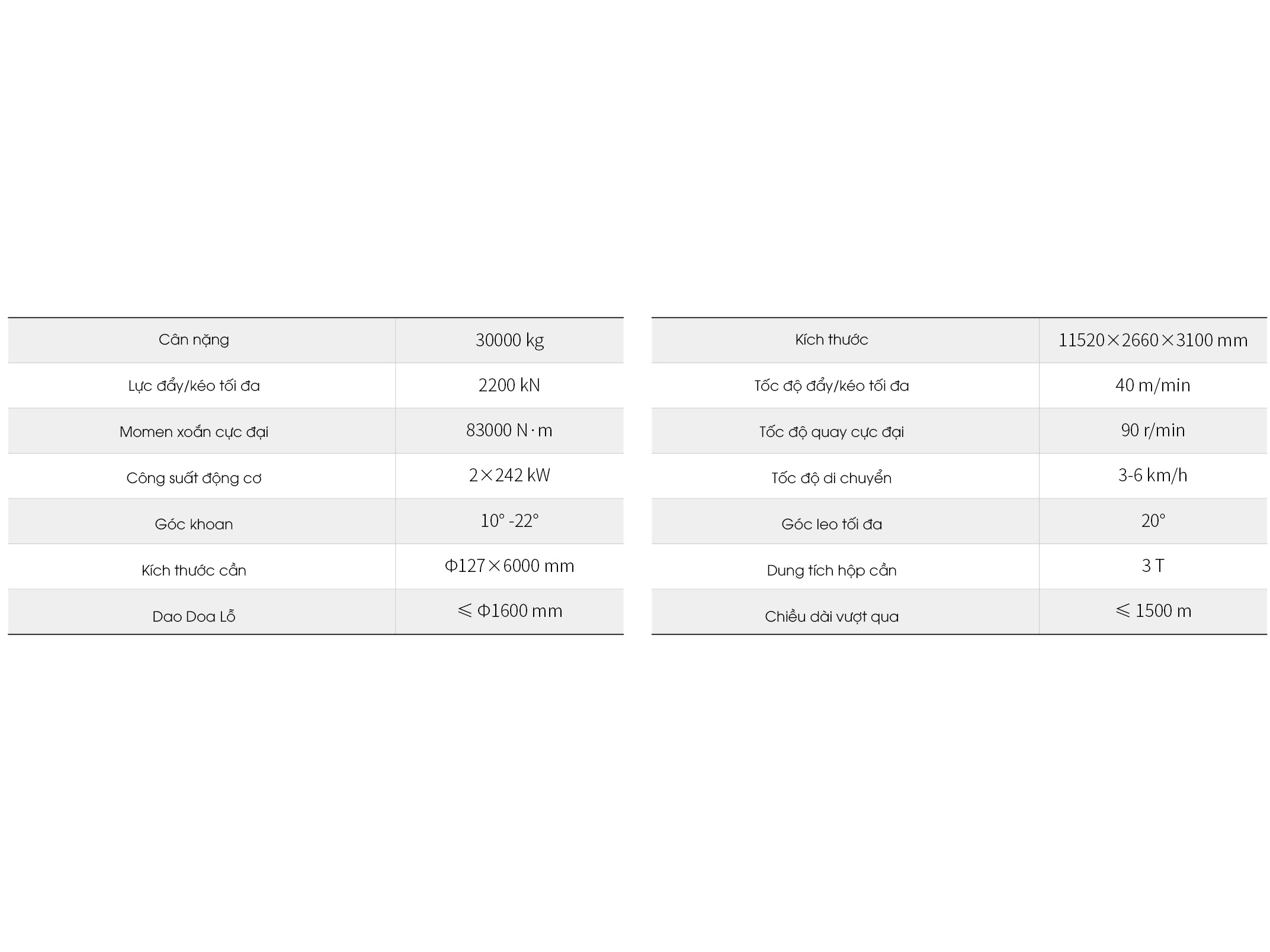 Cho phép điều chỉnh tốc độ biến thiên đa cấp, lực đẩy – kéo tối đa đạt 1300 kN, đứng hàng đầu trong ngành về hiệu suất thi công.