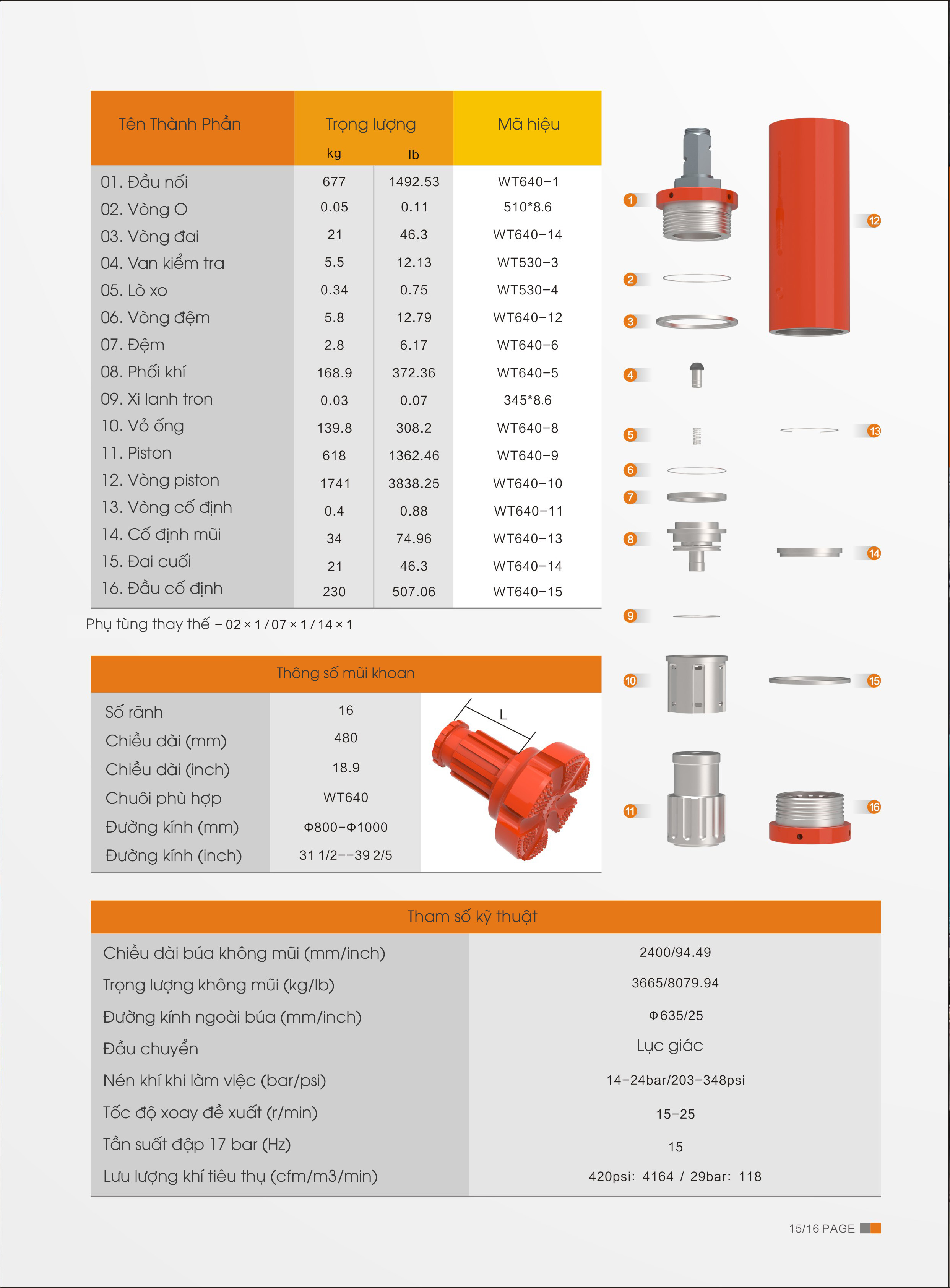 Búa WT640 DTH Hammer là dòng thiết bị khoan đá chất lượng cao, thiết kế đặc biệt để chịu được áp suất khí lớn và hoạt động ổn định trong các công trình khoan từ kích thước vừa đến lớn. Sản phẩm phù hợp với nhiều ứng dụng như khoan giếng, khoan móng, khai thác đá, khoan địa chất.